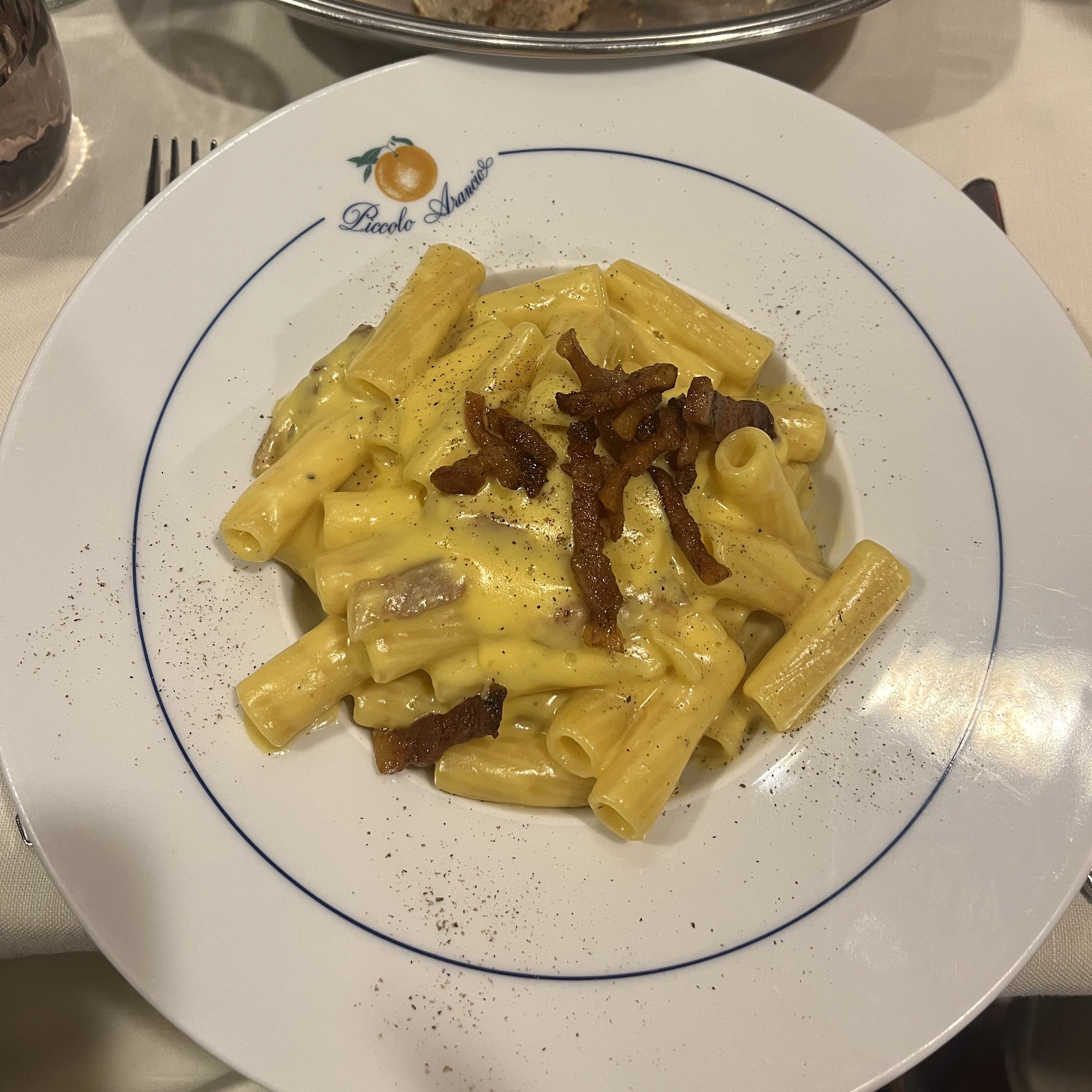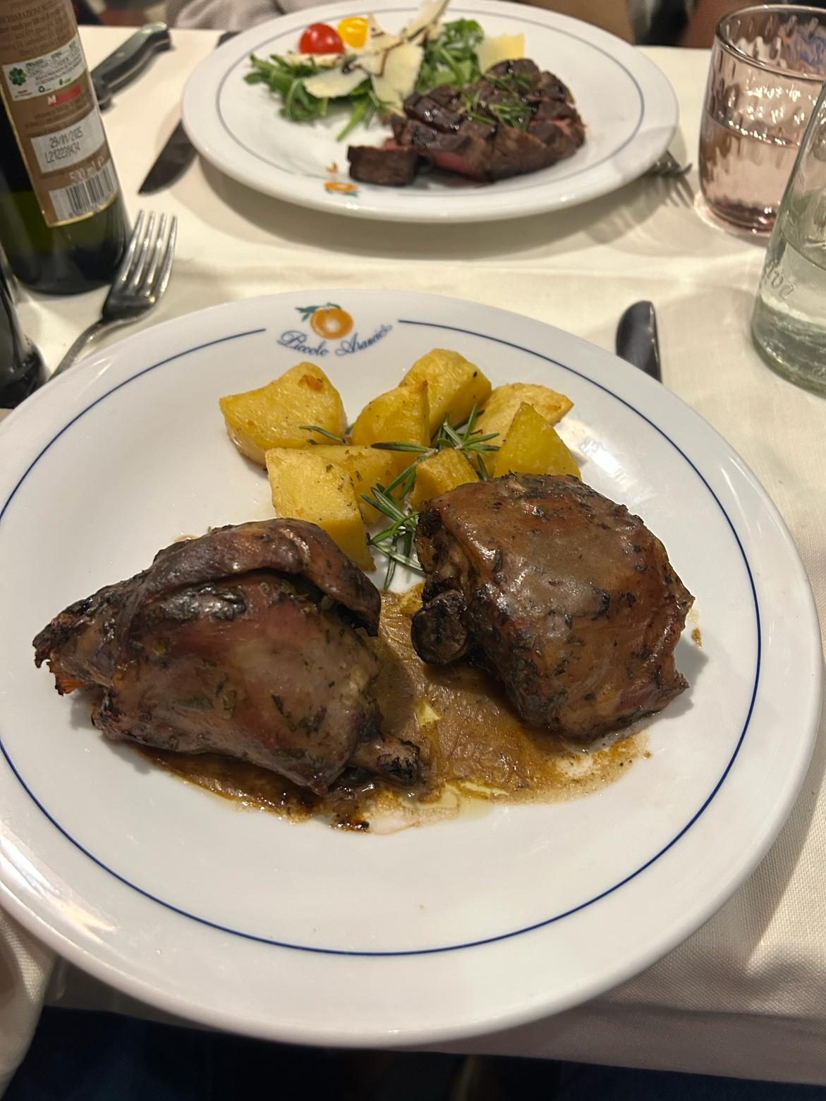 5/5 Tagliata di Filetto di Manzo Al Tartufo Nero: My gosh, I dream about this steak. Now, I have had American filet my entire life. Those Costco filet mignon sticks were a family staple every week. I’ve also had filets at Summit House, Papas Bros, Mortons, Mon Ami Gabi, etc. Let me say as a standard, a true steakhouse in America will always execute these things perfectly: the salad, filet mignon, and a creme brûlée. If they have these things right, then everything else on the menu is usually just as good. If they cannot, then don’t return. Now, Piccolo Arancio is not an American steakhouse, but they have managed to do the salad, filet, and crema catan perfectly. During childhood, my mother went through a phase where she would not allow us to eat any steak cooked below medium well. Steaks like ribeye, brisket, etc would be super tough. While a good filet mignon (there used to be a $20 per pound filet and a $23 option at Costco growing up, I believe it is now something like $23 and $26) was one of those cuts of meat that would stay soft even if you cooked it to well done. The more expensive per pound one always was just as soft and easy to chew, whereas the less expensive was a bit more tough (still soft and easy to cut). Now the filet at Piccolo Arancio was very soft. This gave me the marker that they weren’t just lying to me that it was filet when it wasn’t (common for Viet restaurants to do this in the US). It was requested medium and they did perfect. The meat was so soft you could really just hold it down with your knife and pull it apart with you fork without much force. Perfectly seasoned. The salad on the side was also very very good. The bitterness of the arugula in the salad complimented the balsamic dressing and parmesan shavings very well. The price was also perfect. This dish was the best overall in Rome. You must come and try if you are a true steak lover. Brava Piccolo Arancio, brava.