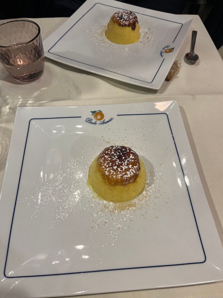 The Food: The food was amazing. We had water bread, for primi lasagna and ravioli, for secondi we had steak, and for dolci gelato and crema catalana. This is also the first and only restaurant that had olive oil and balsamic vinegar available upon request. They also didn’t mind giving a separate smaller dish for this.