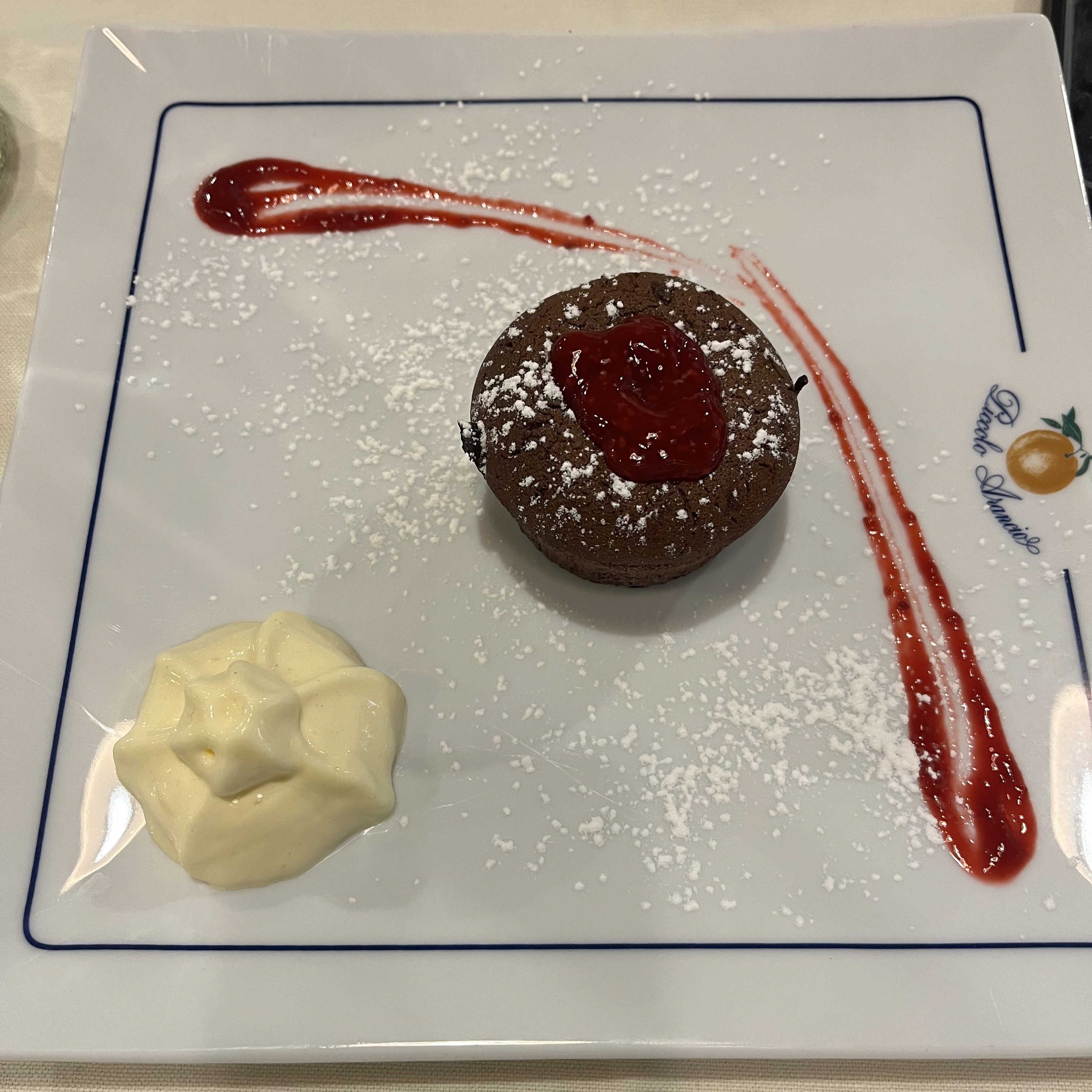 5/5 Torta al Cioccolato (con Gelato): This is made to order. I also ordered it with Gelato as it does not automatically come with gelato. It is not on the official printed menu, but on the yellow paper/special menu they provide. The gelato was a mild vanilla. It was perfect. The cake was basically a chocolate lava cake. Chocolate was filled in the middle. The cake itself wasn’t too dense. The chocolate was also the perfect temperature, not scalding hot and not cold. I enjoyed the raspberry sauce as well with the chocolate, the acidity was the perfect pair with the sweetness of the chocolate cake. The gelato was the perfect temperature balance between hot and cold as well. I recommend this and the Crema Catalina!
