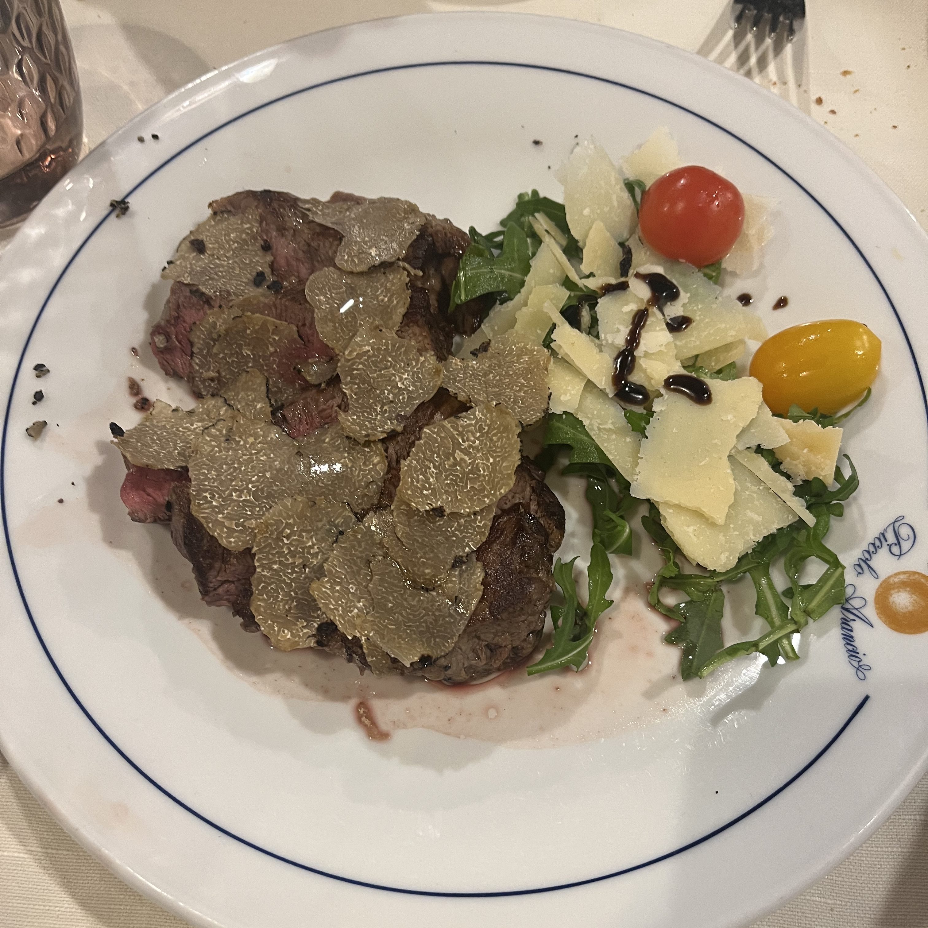 4/5 Tagliata di Filetto di Manzo Al Tartufo Nero: I was wrong lol. This is the real truffle steak. It’s not as good as the cheaper one tbh. I’m not a fan of black truffle because it tastes like earth. LOL Steak was cooked perfectly. Paolo enjoyed the truffle. I would order the non truffle one though.
