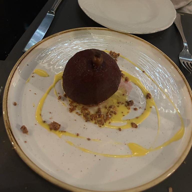 Per concludere ho scelto un pera cotta al cesanese e cioccolato bianco. Non avevo mai assaggiato prima un dessert del genere, quindi non posso confrontarle con altri che mangiato in passato, ma posso dire che mi è piaciuta anche se non può essere considerato un dessert vero e proprio ma una via di mezzo tra frutta e dessert.