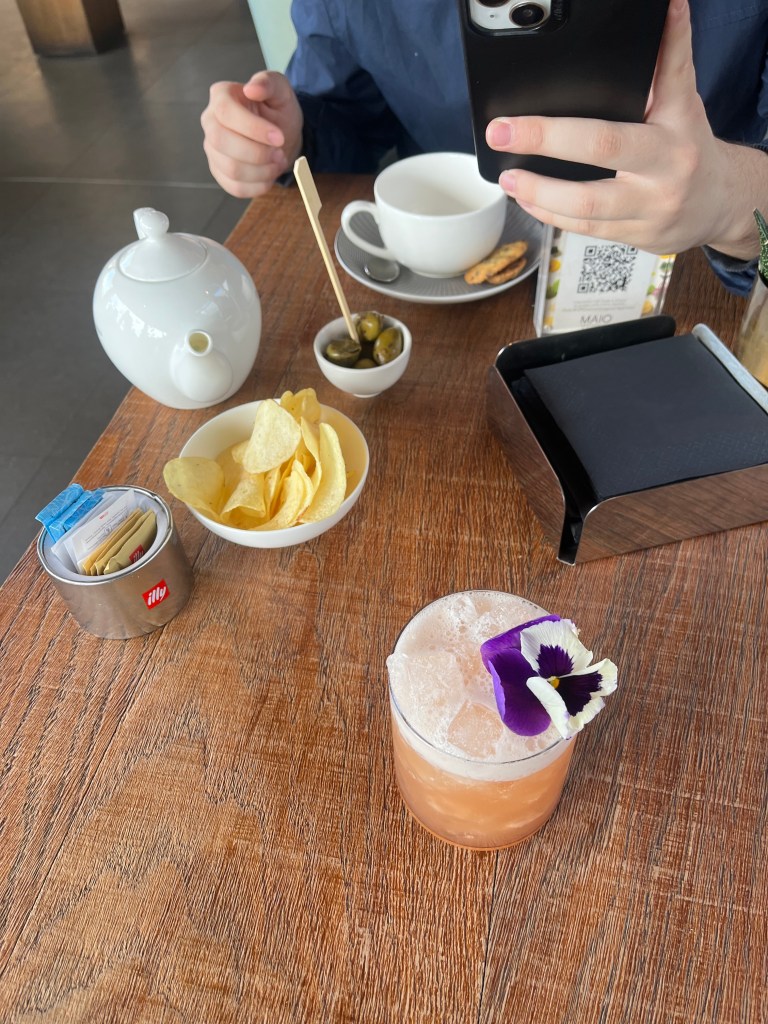 The Food:The food wasn’t bad. You are more coming to this place for the relaxed ambience. It was pretty quiet and peaceful when we arrived. It did get a bit more loud when there was more people, but not overbearing. We ordered hot tea, two mocktails (I think they were called summer vibes and the mint mojito), caesar sandwich, and toast all’italiana. Complimentary chips and olives are provided!