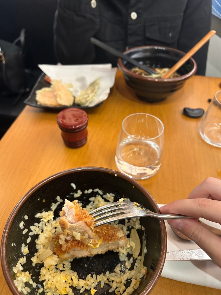 The Food: I was really excited to try the food. I knew it was authentically Japanese, but I wanted to measure how it holds up compared to the Japanese food scene in Rome vs. the Japanese food scene in SoCal. Overall I would say for Rome, this hit the spot and was pretty authentic. For SoCal, the food was good but a bit overpriced compared to what I can get back home. Here’s what we ordered: Niku gyoza (Pork), Tori gyoza (chicken), Agedashi Tofu, Karaage, Tori Katsudon, Wake Udon with Tempura, Green Tea Gelato, and Nagasaki Castella.
