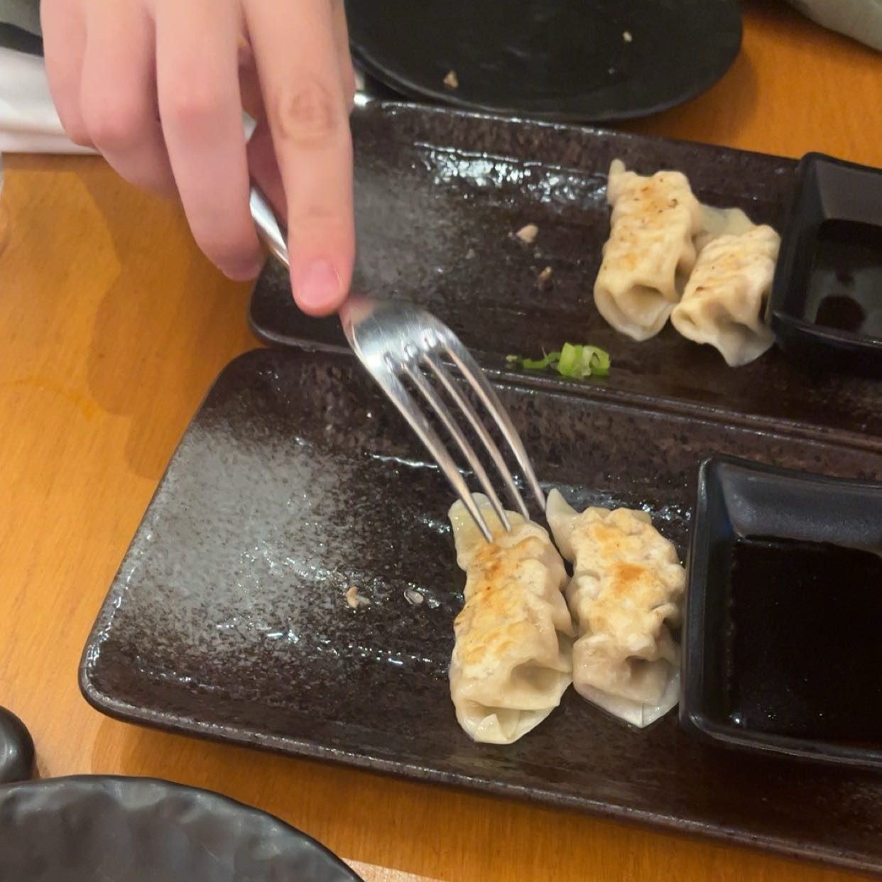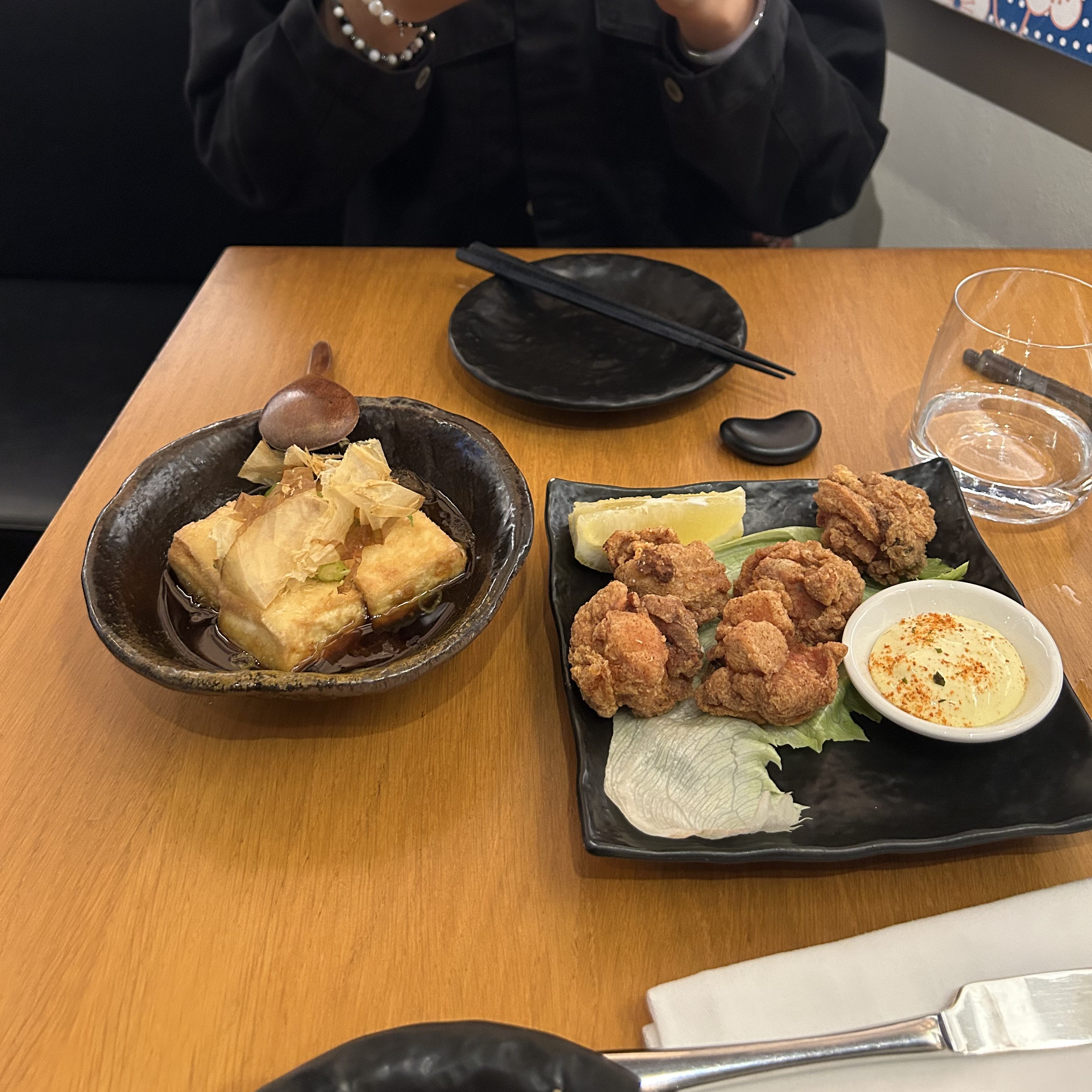 Once Seated: Its a very standard ambiance. I was actually very reminded of the authentic Japanese restaurants in the US. It’s modern and the tables were light colored wood with black plates and chopsticks (forks upon request). The lighting was bright and a perfect tone and intensity. The menu is available in Italian and English (but it also helps that there were Japanese names of things in English). For example karaage was called karaage and not fried chicken or pollo fritto etc. On a side note, there was like no data while we were sitting inside. There is a restroom available but I did. not use it. I will note that I did not appreciate so much the place we were sitting because it was against the wall in the corner and the way the wall was cut was at an angle, so when I sat only half of my back was leaning against the wall. Also the tables were very close together. Occasionally there would also be tiny flies/gnats attracted to the lighting against the wall and on the ceiling so it was a bit unappetizing if I thought about this for too long and annoying to swat away while eating. Hopefully they deal with this issue because they are on the Michelin guide.