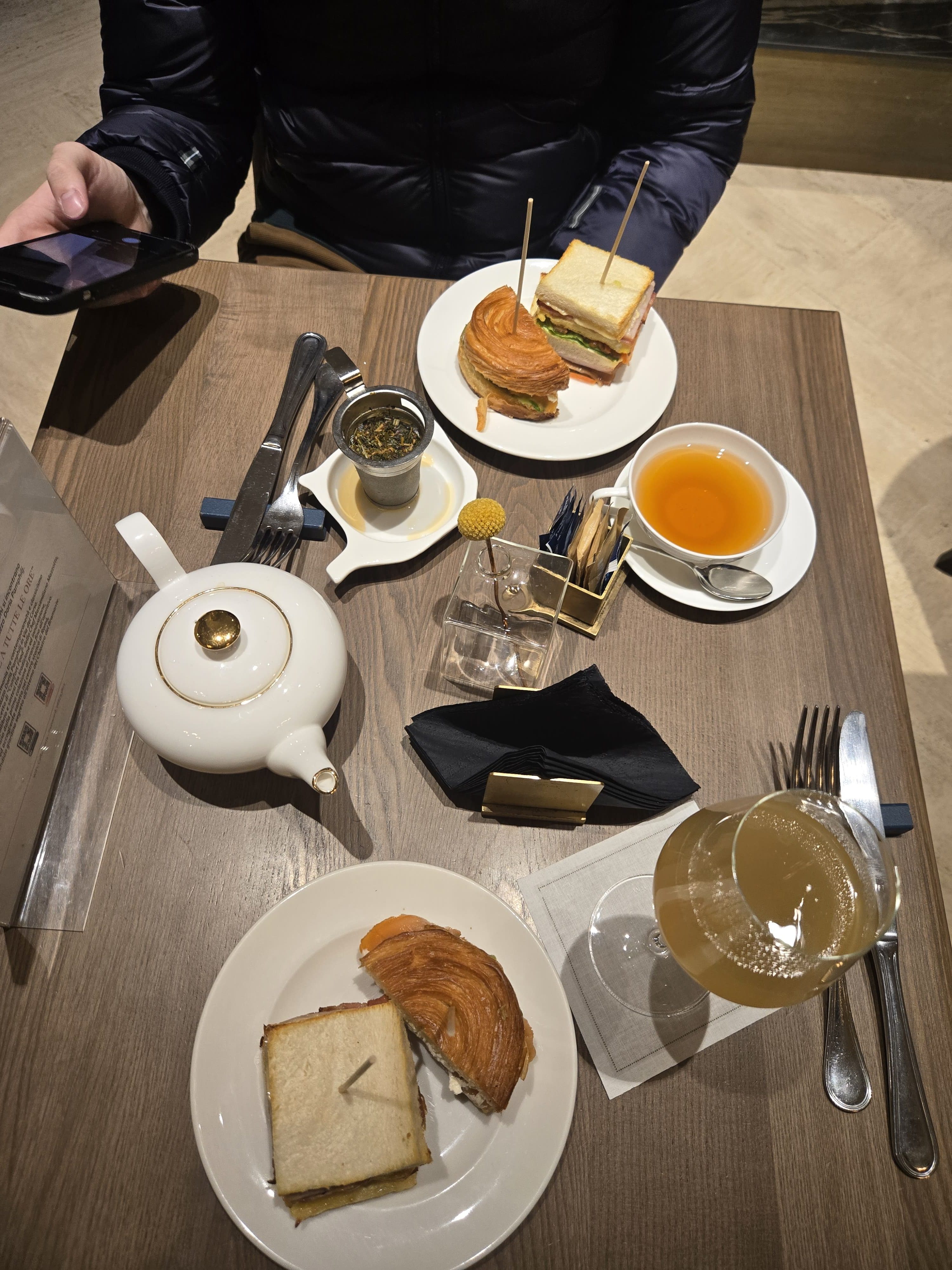 3/5 Bellini and Tea: To be honest the Bellini was a Bellini. The price point was expensive (15 euros I think). The tea was also whatever for its price point. I would recommend asking if they make affogatos here or ordering the hot chocolate since it is winter. Perhaps even a juice of cafe with water would be a better bet.