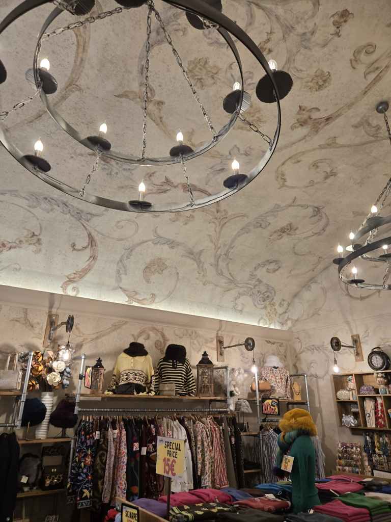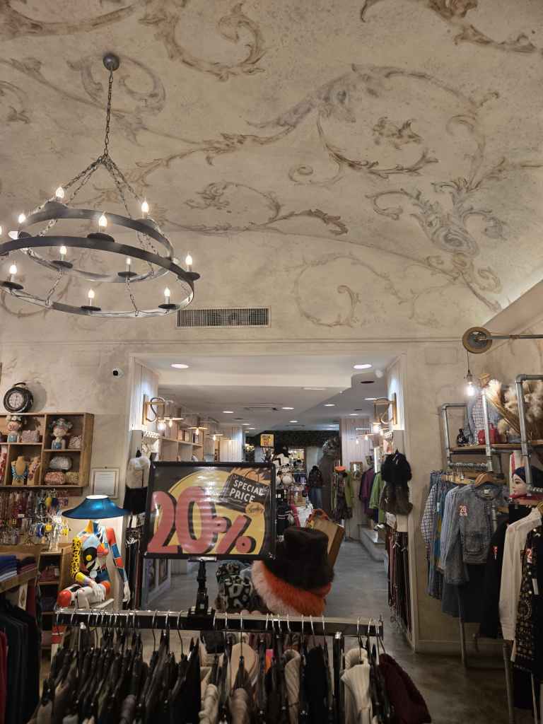 Inside: The store itself is literally so cute and I really enjoyed the fact that it feels European! You all know my thoughts on Roman fashion (atrocious), but I am so glad there are still non corporate boutiques in the city center to support! I really felt refreshed when I walked into the store because the ceilings and the decorations were very unique. The lighting is just right! Not too bright and did not give me a headache at all. I will note that there are not places to sit if you are bringing your boyfriend, husband, male friends, or cousins. However, there is an Irish pub ten feet away as well as a cafe next door. The Irish pub is good if people want beer and snacks, but personally I would send my family to Caffe Doria (my review here: Caffè Doria!) It is around the corner from the store if your group wants something a bit more upscale.